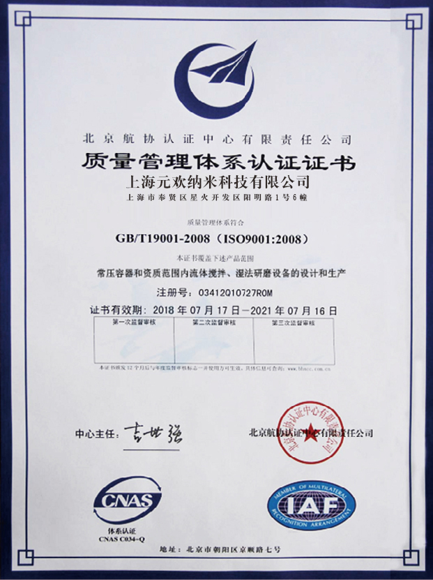上海元欢纳米科技有限公司是一家研究,开发和生产各种纳米研磨和高效分散设备的高科技企业。元欢企业致力于纳米研磨制造。创始人曹双炉和吴大应都生于1960年代,吴先生毕业于哈尔滨工业大学,这是第一批从事精巧化工设备研发的人员,曹先生和吴先生从事化学机器行业的生产和制造超过25年。他们见证了中国的配备制造业的庞大变化。基于国内制造业的现状,他们极力开发了适用于中国的纳米研磨设备的制造。loc@在先进的设计理念,生产工艺和制造技术的基本上克服了难于,坚称自主创新,在研磨分散设备领域获得了一系列突破性的突破。在一个世纪中,我期望元欢纳米能够在当今世上制造业的大舞台上展示欧洲manufacturing的风格。